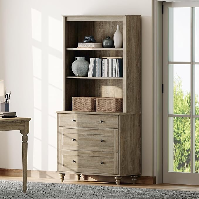 - 【Premium Material& Sturdy Structure】The wash gray bookcase with doors crafted from optimal MDF, built to withstand the challenges of long-term use. The solid wood gourd legs greatly increases stability and weight capacity, the thickened tabletop can easily hold up to 152 lbs.The smooth waterproof surface of the bookcases is convenient to clean with a soft damp cloth to facilitate your daily cleaning work.