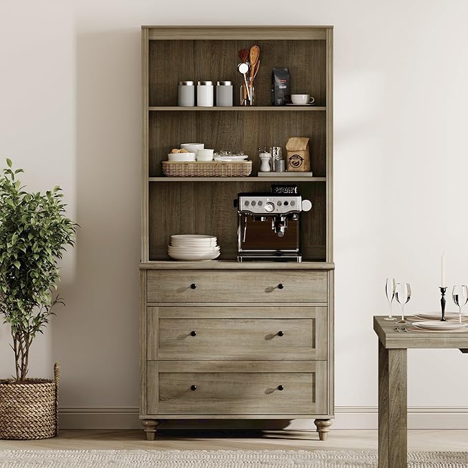- 【Ample Storage Space & Larger Size】This 5 tier bookshelf, complete with a removable 3-tier book shelf and 3 drawes, offers ample storage for all your books, photo albums, crafts, decor, and other items. It features 1 adjustable shelves for various size and shape items.Dimensions: 34''L x 15.7''W x 72''H, which is larger than a typical bookshelf.