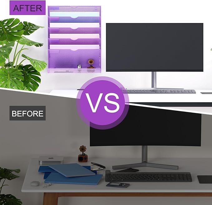 - 【Multiple Uses】This office organizer requires no assembly and can be used directly on your desk or mounted on the wall. Make full use of vertical space and keep your desk clear. Rounded corners and smooth edges are designed to protect people from scratches while in use.