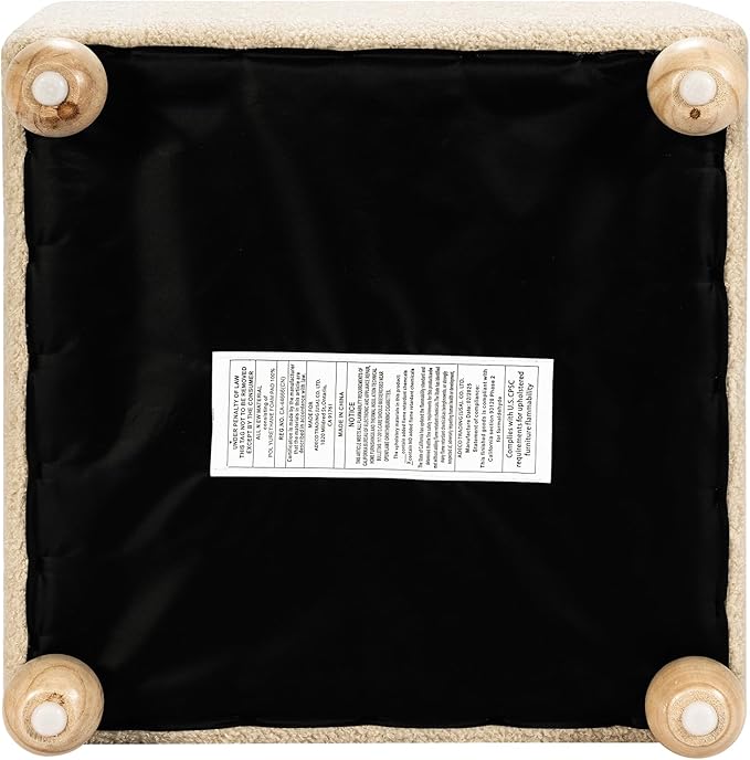 Adeco 17 Inch Soft Oatmeal Cube Ottoman Storage, Teddy Velvet Chair Foot Stools, Upholstered Vanity Stool with Hinged Lid, Solid Round Wood Legs