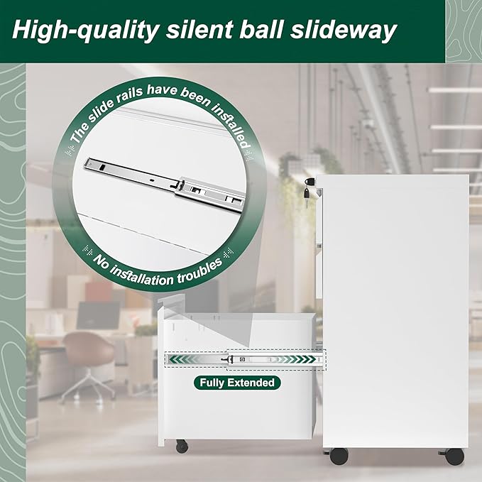 - ❤Lockable Mobile File Cabinet: 3 Drawer filing cabinet Instructions are supplied from the factory. You just need to follow the process of the manual to install it. The installation process is simple and can exercise hands-on ability. 1 lock secures all the three drawers.Tips: 2 keys should be kept separately in case of losing.