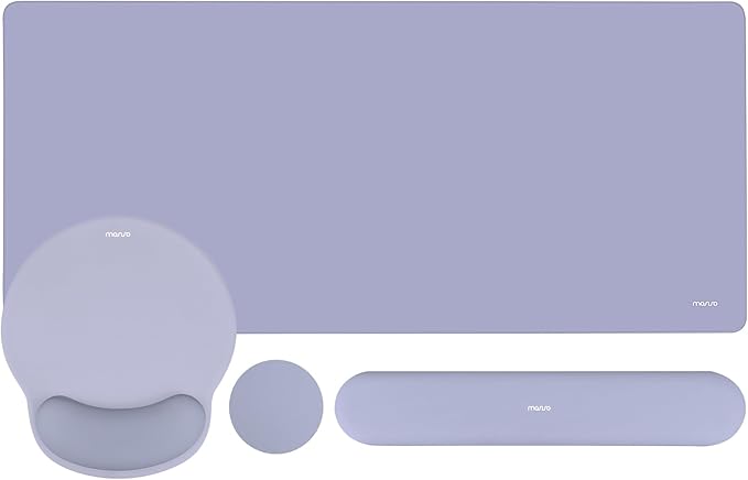 MOSISO Wrist Rest for Keyboard Mouse Pad Set,Large Gaming Deskpad&Circle Curved Mousepad&Keyboard Wrist Rest&Coaster,Ergonomic Non-Slip Mousepad&Easy Typing Pad with Curved Memory Foam,Lavender Gray