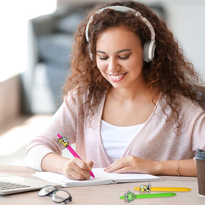 - 10-Pack Hilarious Phrase Gel Pens - Instant Mood Boosters! Each pen features a unique, eye-catching clip adorned with funny, relatable phrases in vibrant, cheerful colors. With ample quantity and diverse styles
