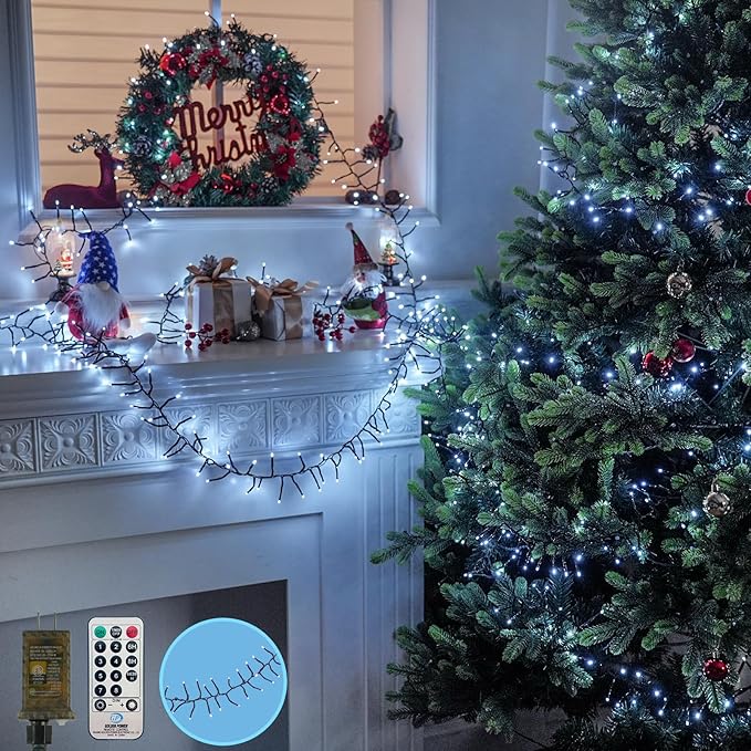 - 【Brighter Cluster Christmas Lights】: Transform your holiday decor with our dazzling 2000-LED cluster Christmas string lights, stretching 100 feet, which are four times brighter than ordinary lights, giving off enough light to instantly illuminate wherever you want to create a stunning Christmas atmosphere. Perfect for Christmas trees, wreaths, fireplace mantels, bushes, fences, gardens, and more. Whether it’s Christmas, Thanksgiving, New Year’s, birthdays, or beyond, these bright lights turn ordinary spaces into a wonderland. Simple, bright, and full of cheer—these lights are the perfect way to light up your Christmas!