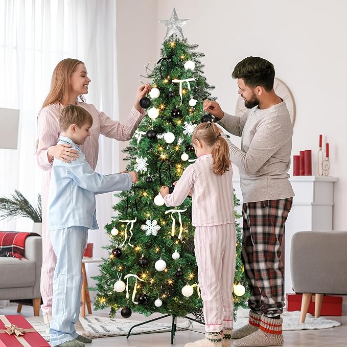 - Package includes: The Christmas tree decorations set offers a comprehensive collection for festive decoration. This set includes one 20cm/7.87 inches white Christmas tree topper, 48 black and white Christmas balls in two sizes (2.4 inches and 1.6 inches), 20 white snowflakes with hanging chains, 16 black and white bows, and a 20m/65.5ft string of lights. This set provides a variety of decorations to ensure your tree looks vibrant and inviting, ideal for creating a memorable holiday atmosphere.
