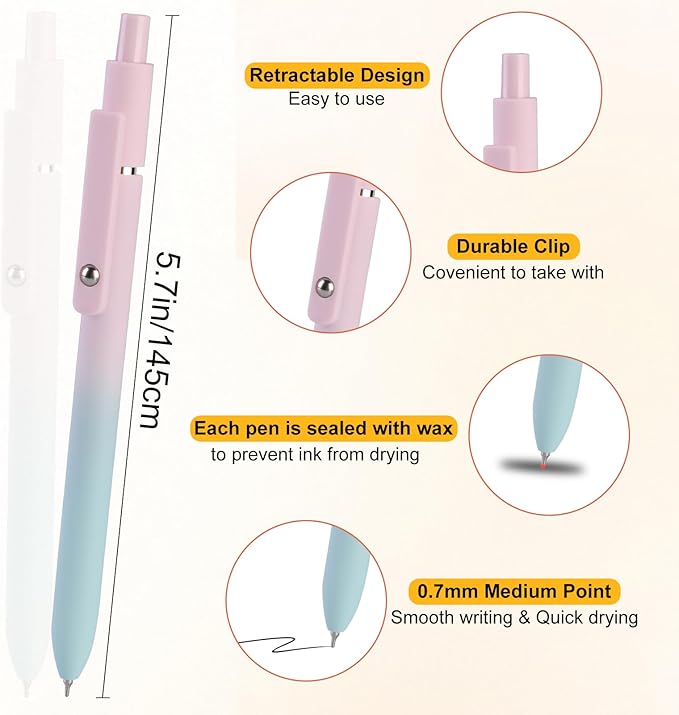 - 【Practical Gift】 You can use these gradient gel pens as gifts for your family, friends, students, classmates and colleagues on birthday, thanksgiving day, graduation ceremony, classroom activities, parties and other occasions.