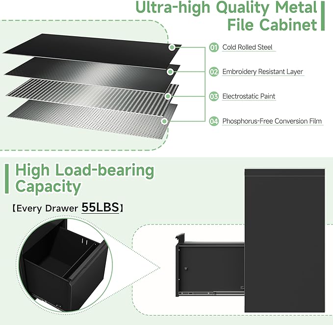 - 🔐【Advanced Security】The metal filing cabinet comes with a lock to ensure the safety and security of your important documents and confidential information.This heavy duty filing cabinet for home office is made of high quality cold rolled steel, the metal plate is thickened, you can use it for a lifetime; the exterior is powder coated, which makes this filing cabinet organizer more modern and stylish, and it can be perfectly matched with other furniture.