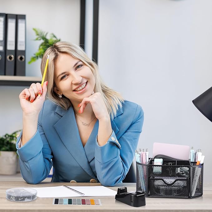 - Many Occasions: this black office desk supplies is suitable for office desks, dressers, coffee tables, kitchen countertops and more; Store notebooks, pens, business cards, makeup tools, gadgets, spices and more; Keep your desktop organized