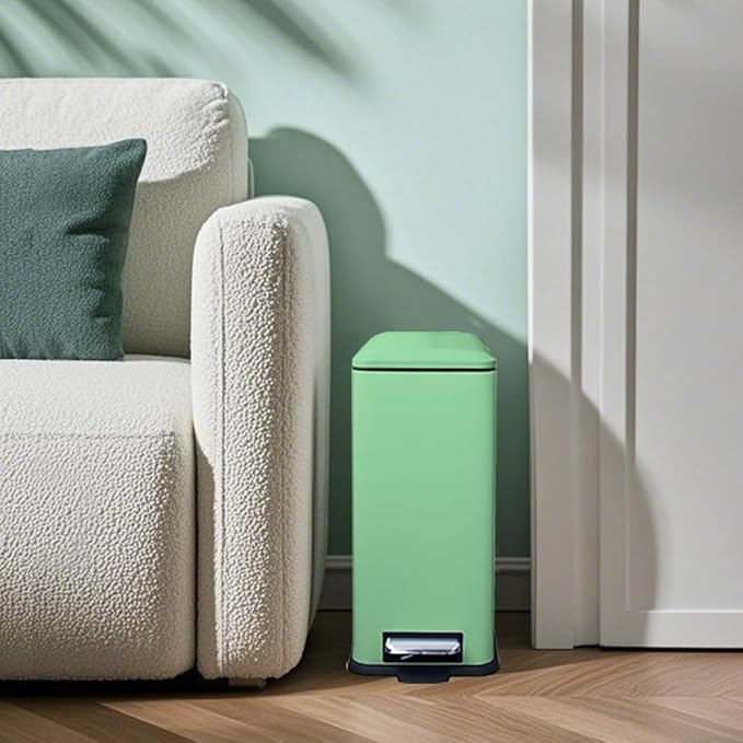 - Slim Trash Can Save Space: 12 gallon trash can is Ideal for busy kitchens, this Green garbage can balances spacious storage with a slim rectangle design (10 inch width) to fit snugly in corners or tight spaces. No more bulky bins cluttering your kitchen!