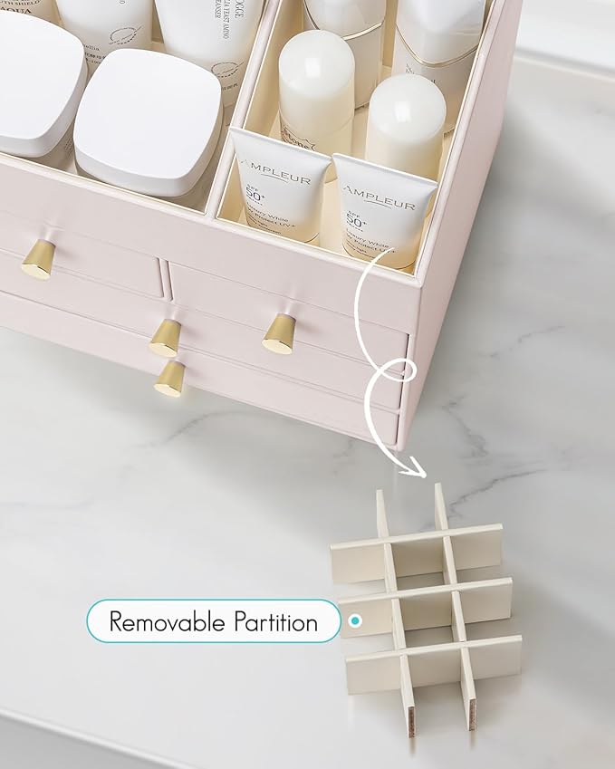 - Durable Makeup Organizer: Made of high quality PU leather, smooth and completely flat. Not easy to stain, and easy to wipe. Each drawer slides out with ease for easy access to your cosmetic. (Do not leave it in a damp place for a long time)