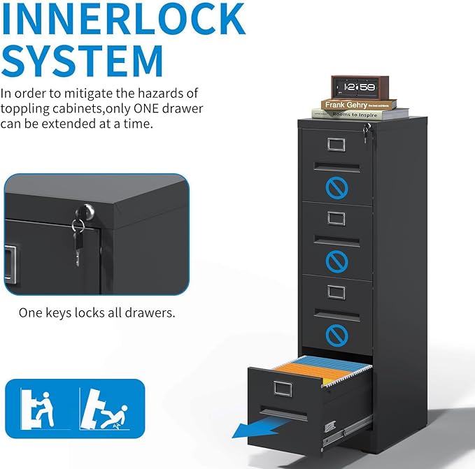 - 【Noiseless & Anti-Tipping Design】The smooth, quiet sliding rails make opening and closing drawers effortless and noise-free, allowing you to access your files without disturbing others in the workspace. The metal filing cabinet features a one-drawer-at-a-time mechanism, which prevents multiple drawers from being opened simultaneously. This design ensures the cabinet remains stable and reduces the risk of tipping, even when fully loaded.