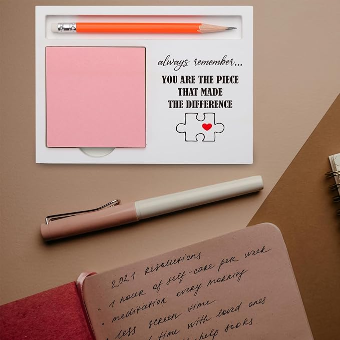 You Made The Difference Gift Desk Organizer with Puzzle Heart Design for Farewell, Volunteer, Teacher, or Team Appreciation Inspirational Note Pad Holder for Recognition XBCT13