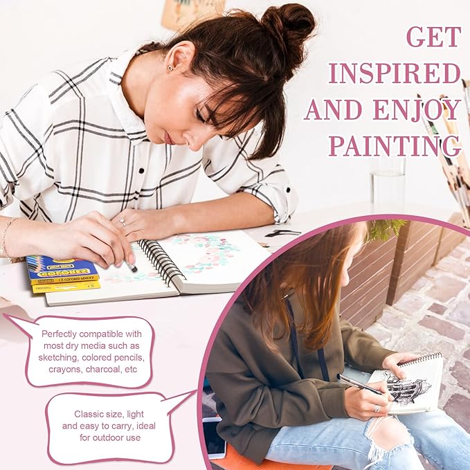 - 【Dry Media Universal Sketchbook Set】Textured paper handles sketching, shading, and detail work. Optimized for pencils, crayons, markers, and chalks. Versatile choice for classroom, hobbyist or professional art projects