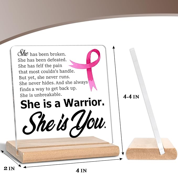 - Breast Cancer Survivor Gift: This "She is a Warrior. She is You." acrylic plaque is a great motivational gift idea for female cancer patients, cancer fighter patients and breast cancer patients.