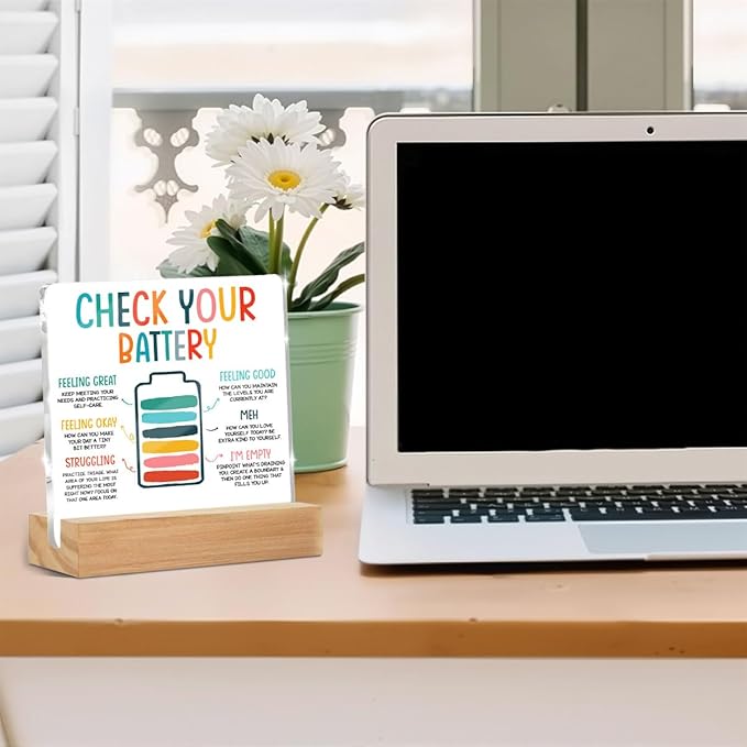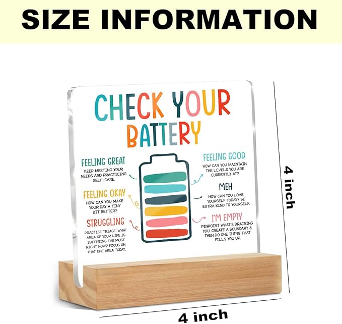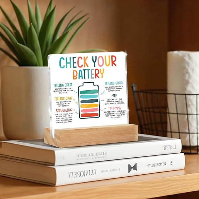 Inspirational Gifts for Women Men Coworkers, Mental Health Therapist Office Desk Decor Clear Acrylic Sign, Therapist Office Art Decor for Desk Gadgets Tabletop Cubicle, Check Your Battery