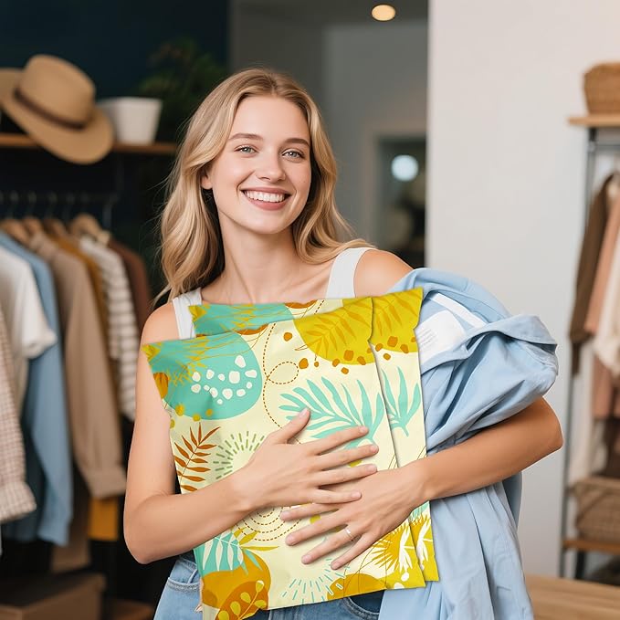 Colorful Leaves Poly Mailer 6x9 Inch 100 Pcs, Waterproof Shipping Bags for Clothing, Tear-Resistant Mailier Bags, Strong Mailing Bags with Self-Seal