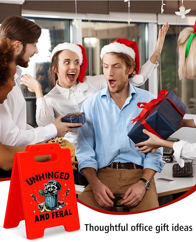 Funny Raccoon Desk Little Signs - Unhinged and Feral Raccoon Gifts for Women Men, Gag Office Gifts for Coworkers Cubicle Office Decorations