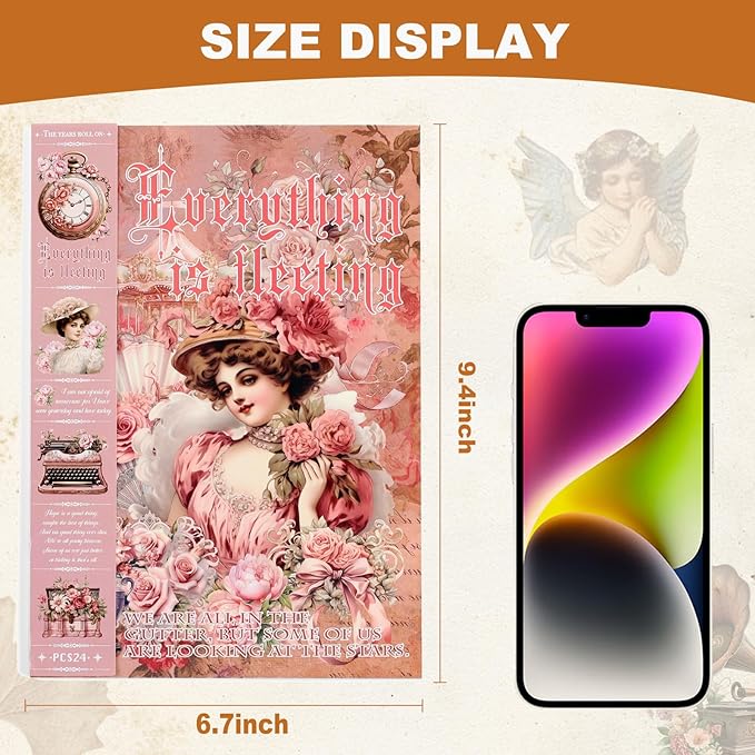 Vintage Ephemera Sticker 24 Sheets precut 300 washi Stickers Paper People Journal Stickers for Adults Junk journaling Sticker Book Scrapbooking Supplies