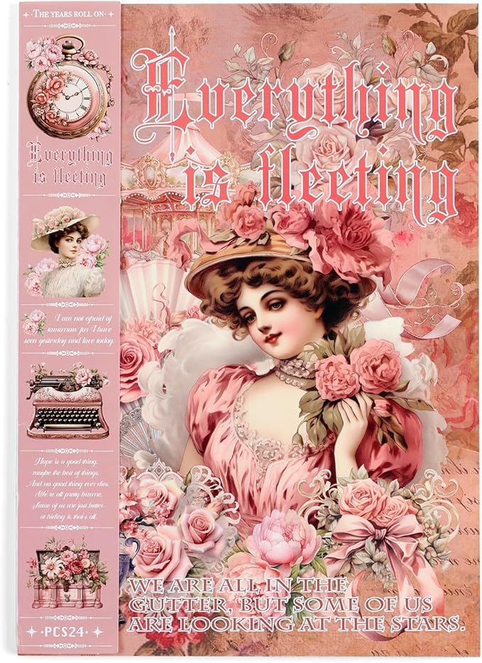 - Our vintage scrapbook stickers feature a variety of designs, including women, girls, pink flowers, clocks, carriages, cakes, sewing machines, houses, and more. You can use these stickers to make your scrapbook pages more personal. They add color, texture, and visual interest, making your scrapbook look even better.