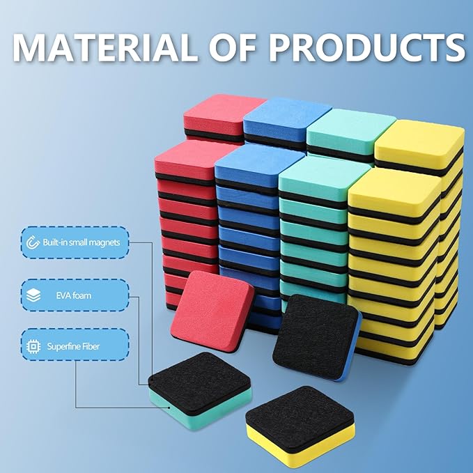 - Convenient Magnetic Design: Each whiteboard eraser comes with a built-in magnet for easy attachment to any magnetic-receptive whiteboard, ensuring they are always within reach when you need them.