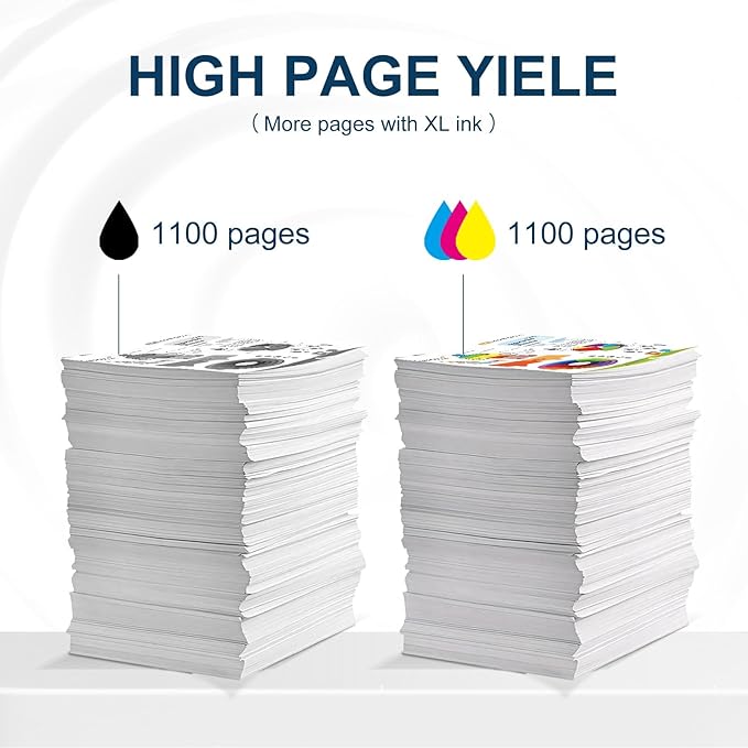 - ♥ High Page Yield for 822xl ink cartridges: Each 822XL black ink cartridge for epson workforce pro wf-3820 printer ink cartridges can print up to 1100 pages, each 822XL color ink cartridge for epson workforce pro wf-4830 ink cartridges could print up to 1100 pages (at 5% coverage)