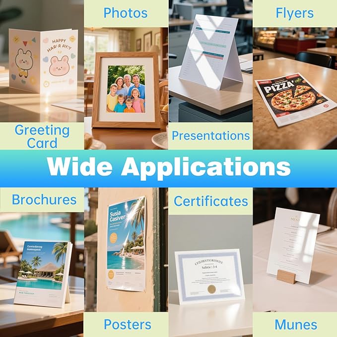 - USED FOR: Unfold greeting cards, Photos, Photo Albums, Arts, Menu Printing, Calendars, Brochures, Flyers, Posters,Christmas Cards ,Wedding Cards, etc value packed for your business and home use
