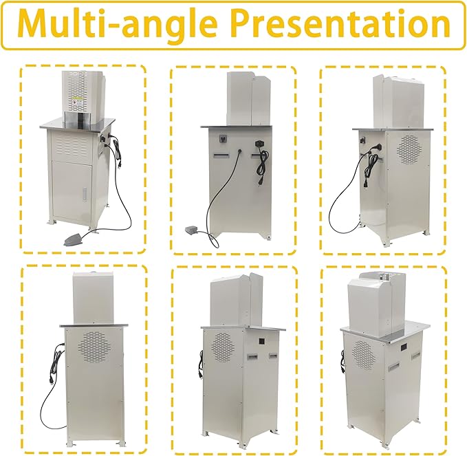- [FOOT-OPERATED PRECISION CONTROL]- Engineered for ergonomic efficiency, the paper round corner cutting machine features a responsive foot pedal that enables completely hands-free operation. This design liberates both hands for optimal material positioning and alignment adjustments during rapid processing. Operators can maintain continuous workflow rhythm by triggering cutting cycles (56 times/minute) without interrupting material handling