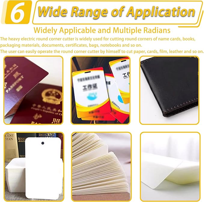 - [MULTI-RADIUS CAPABILITY]- A rotating blade disc houses five precision-ground cutting heads (R8, R10, R12, R16, R21 radius) enabling instant radius changes. This modular system accommodates diverse cornering requirements – from delicate business cards to thick portfolios – through simple disc rotation. Each hardened steel blade pairs with a dedicated protective pad to maintain edge integrity during high-impact operations, extending service life and ensuring clean cuts across materials