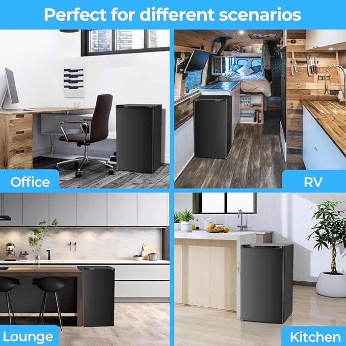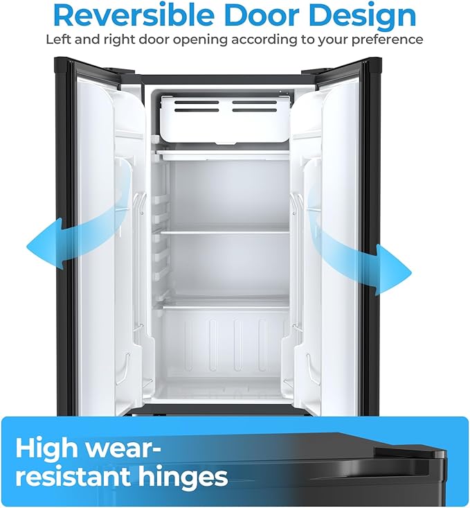 - Golden capacity, compact and does not take up space: 2.90cu.ft refrigeration & 0.30cu.ft freezing dual-zone configuration, scientific division of fresh and frozen space; 17.52"W x 19.09"D x 31.3"H, small space can also realize large-capacity storage.