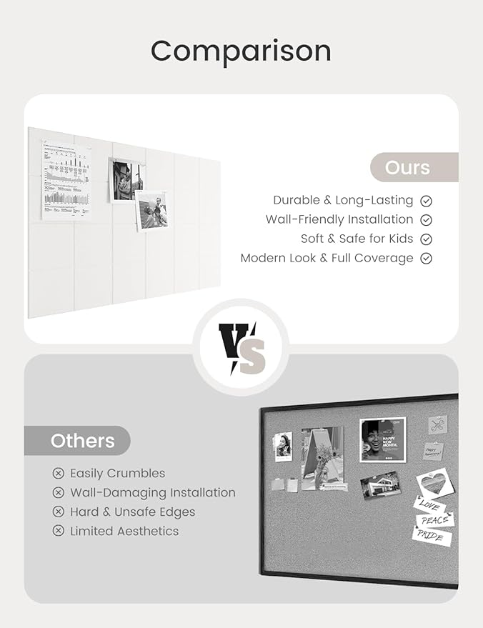 - 【Felt Bulletin Board – 12 Tiles Included】 Includes 12 felt cork boards (each 11.8" x 11.8") with 30 Pushpins that can be freely arranged into a large display board. Perfect for showcasing your schedules, ideas, and creations in home or office settings.
