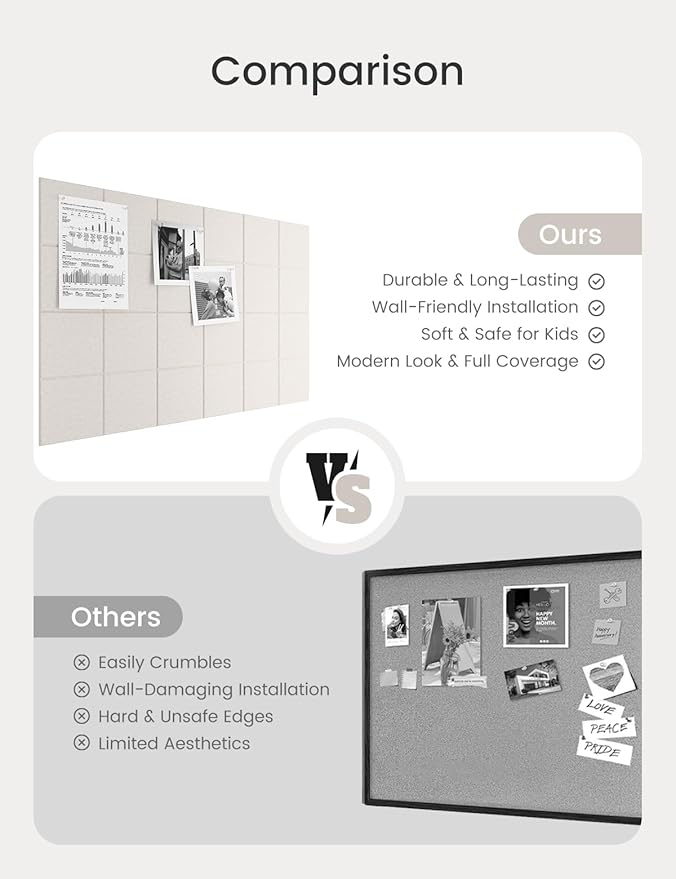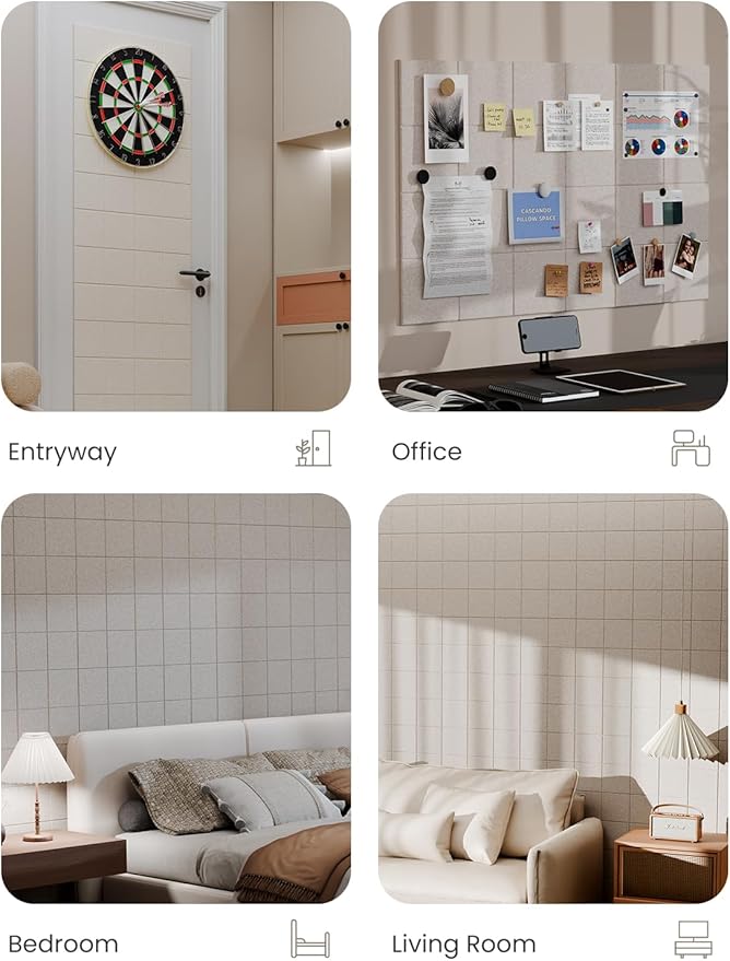 - 【Felt Bulletin Board – 12 Tiles Included】 Includes 12 felt cork boards (each 11.8" x 11.8") with 30 Pushpins that can be freely arranged into a large display board. Perfect for showcasing your schedules, ideas, and creations in home or office settings.