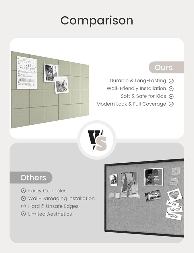 - 【Felt Bulletin Board – 12 Tiles Included】 Includes 12 felt cork boards (each 11.8" x 11.8") with 30 Pushpins that can be freely arranged into a large display board. Perfect for showcasing your schedules, ideas, and creations in home or office settings.