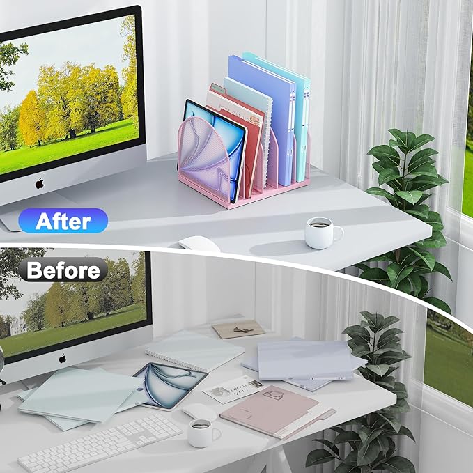 - 【Compact & Organized】This desktop organizer features 5 compartments for classified storage, helping you effectively organize your desktop documents. Its mesh see-through design allows quick identification of important files, making access faster and more convenient.