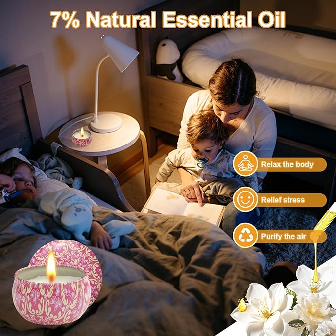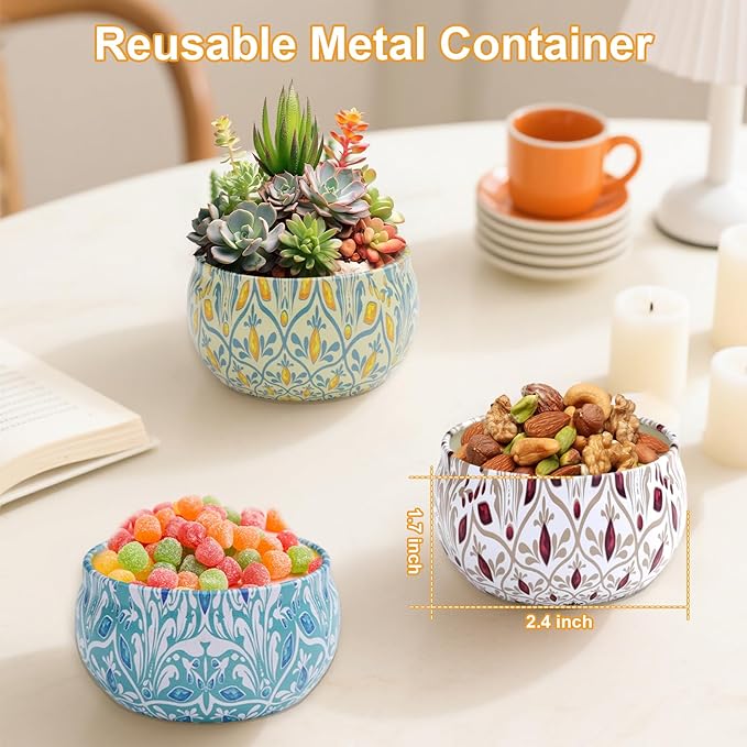- ๐๐จ๐ซ๐ญ๐๐๐ฅ๐ ๐๐ง๐ ๐๐๐ฌ๐ฎ๐๐๐ฅ๐: All the candles for women have metal candle tins with exquisite artistic patterns, suitable for decorating your house or storing small things as candy tin, jewelry container, flower pots etc. The small candles are convenient for taking out and easy to pack without worrying about the containers breaking