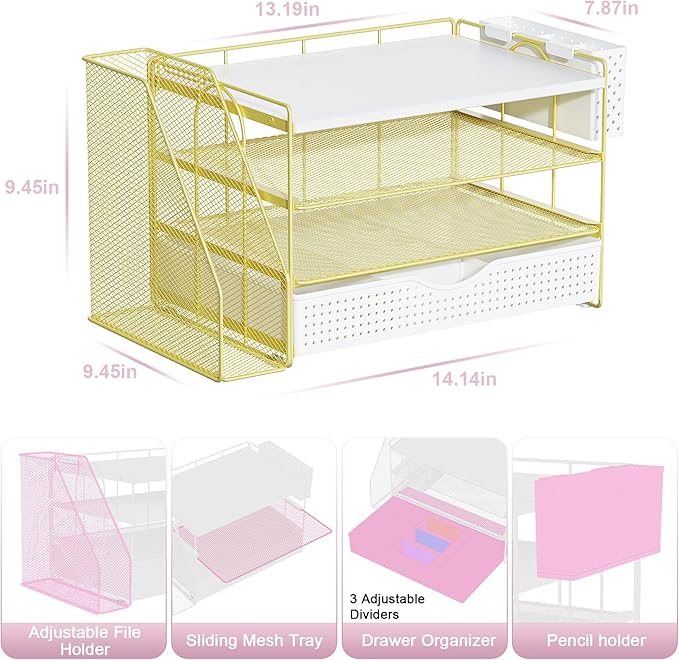 - 【Improve Work Efficiency】: This pen organizer contains 4 trays, 1 magazine rack, 1 pen holder, and 1 sliding drawer, which can help you quickly identify the contents of each compartment, helping to keep papers, notebooks, and office supplies neatly organized and easily accessible., so that you can stay busy and creative all day long.