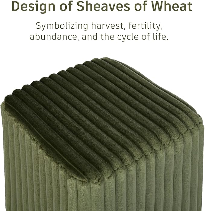 - Selected Material- This small square ottoman is constructed with engineered wood. Padded with soft polyurethane and upholstered in velvet with attractive traditional styling with vertical channel-tufted cushions.