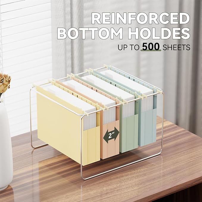 - 【REAL EXTRA CAPACITY】: Extra capacity hanging file folders buttom 2" expansion design for up to 500 files at once; Easily stuff large and bulky files, medical charts, product manuals,tax declaration forms, court documents and more into your expandable hanging files.