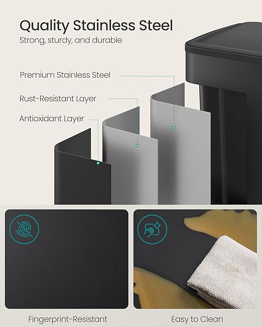 - Robust & Silent: This garbage can is crafted from quality stainless steel for lasting strength. The lid shuts smoothly and silently, preventing disruptive sounds