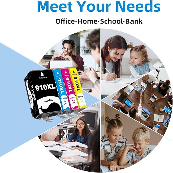 - Compatible for OfficeJet Pro 8020 8025 8028 8030 8035 series printers; 910XL ink cartridges combo pack work for HP OfficeJet 8010 8022 8015 8018 series printers.