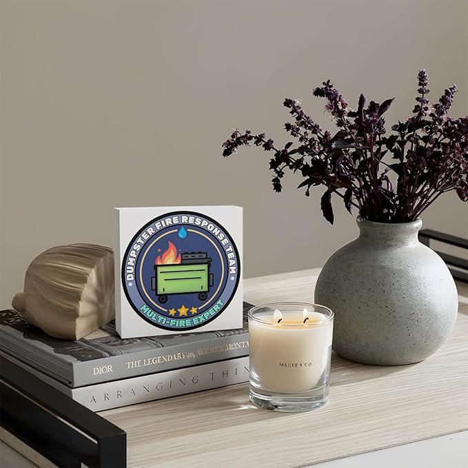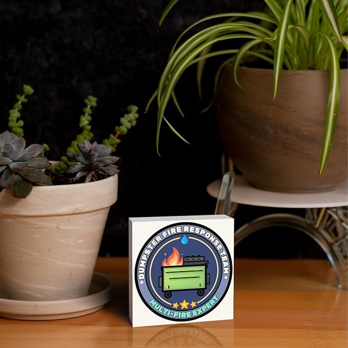 Funny Dumpster Fire Desk Decor Sign, Multi-Fire Expert Wooden Box Sign for Home Office Shelf Table, Fuuny Gifts for Women Men Coworkers Friends Employees, 5x5 Inch,AA089