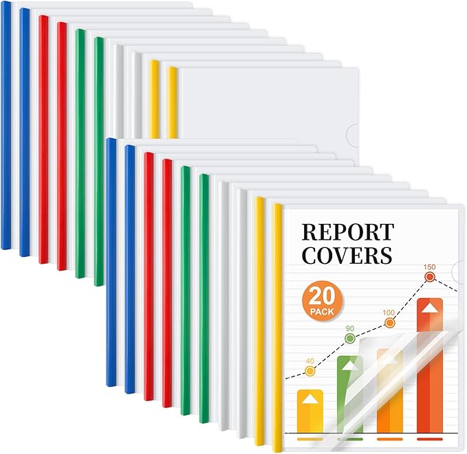 - Package Contain: Set of 20 clear report covers with sliding bars in 5 assorted colors, red, blue, yellow, green, white, to help you sort documents more orderly, designed classic and professional appearance
