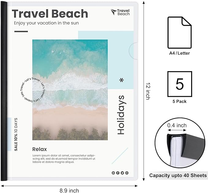 - Package Contain: Set of 5 clear report covers with black sliding bars, classic and professional design