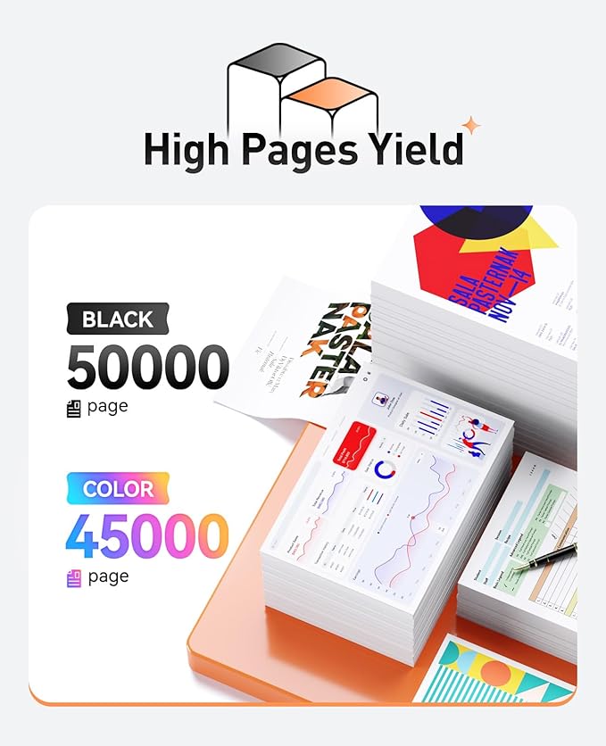 - Yield & Version: W9170MC Black Toner Cartridge can print 50,000 pages, and each W9171MC W9172MC W9173MC color Toner Cartridge can print 45,000 pages. (A4, 5% Coverage), High Yield Version W9170MC toner cartridges.