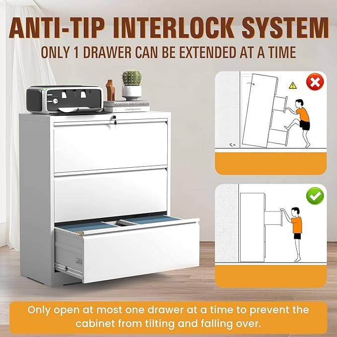 - 【Enhanced Safety Design】This locking drawer cabinet features an intelligent anti-tip mechanism that automatically limits the opening of only one drawer at a time. This innovative safety system maintains perfect balance and prevents accidental tipping, creating a safer workspace for you and your colleagues.