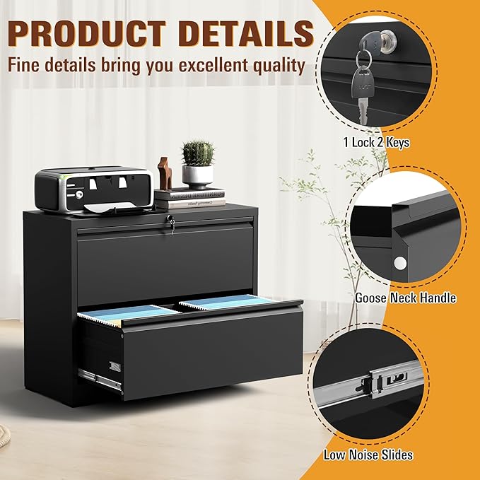 2-Drawer Lateral File Cabinet with Lock, Black Metal Filing Cabinet for Office or Home – Secure Storage for Letter/Legal/A4/F4 Documents, Easy to Assemble Locking File Organizer (Black, 2 Drawer-26"W)