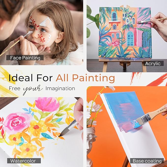 - For Artists of All Levels & Multiple Mediums - A must-have paint brush set for beginners, hobbyists, and professional artists alike. Works beautifully with acrylic, oil, face paint and watercolor paints for canvas painting, craft projects, decorative details, or DIY projects—making every painting session easier and more enjoyable