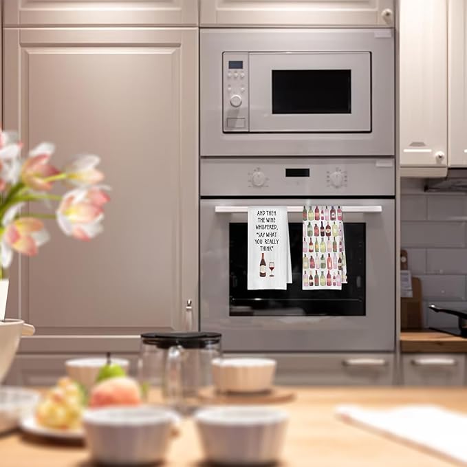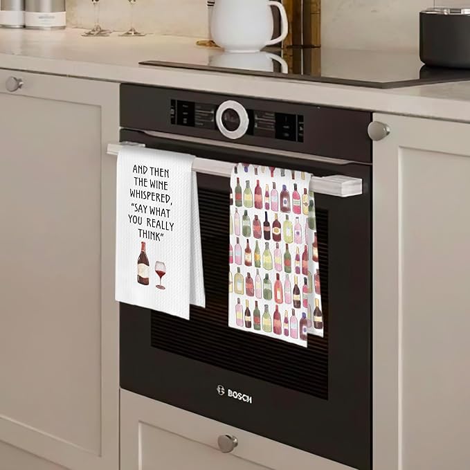 Funny Wine Kitchen Towels - Wine Gifts Dish Towels for Kitchen Decor, Bartender Gifts for Women Decorative Waffle Hand Tea Towel, 16x24 Inches Set of 2