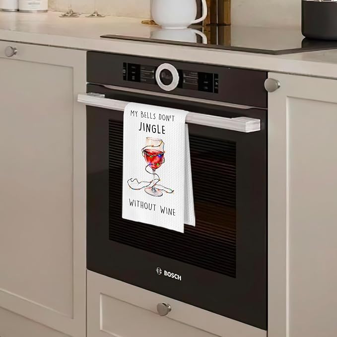 Christmas Wine Kitchen Towels - Wine Lover Gifts Dish Towels, Christmas Bar Decor, Bartenders Gifts Decorative Waffle Hand Tea Towel, 16x24 Inches