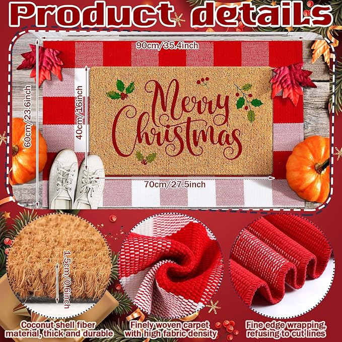 - Suitable for Various Occasions: this Christmas porch mat and carpet set is suitable for several occasions; Whether it's a shower mat, bath mat in the laundry room, decoration for dining room, or a birthday, holiday, anniversary, or wedding gift, the coir mat and plaid outdoor rug add charm and function to the space
