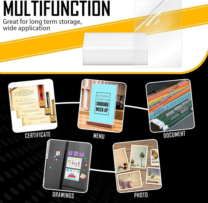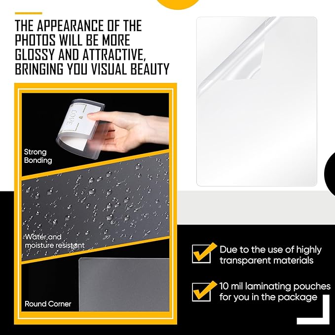 - Multiple Applications: our thermal laminating pouch is suitable for your documents, cards, artwork, photos, pictures, etc., with a flexible and stable surface, which can support long term service life